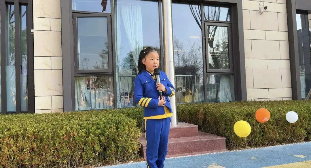 大家好!我是大一班的周蔓辰小朋友。今天,我国旗下讲话的内容是《骏马启新程,童心向未来》,我们站在庄严的国旗下,迎来了马年新学期。