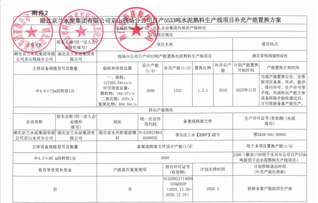 水泥熟料线,该线计划2026年3月关停,按新备案产能组织生产前拆除退出。
