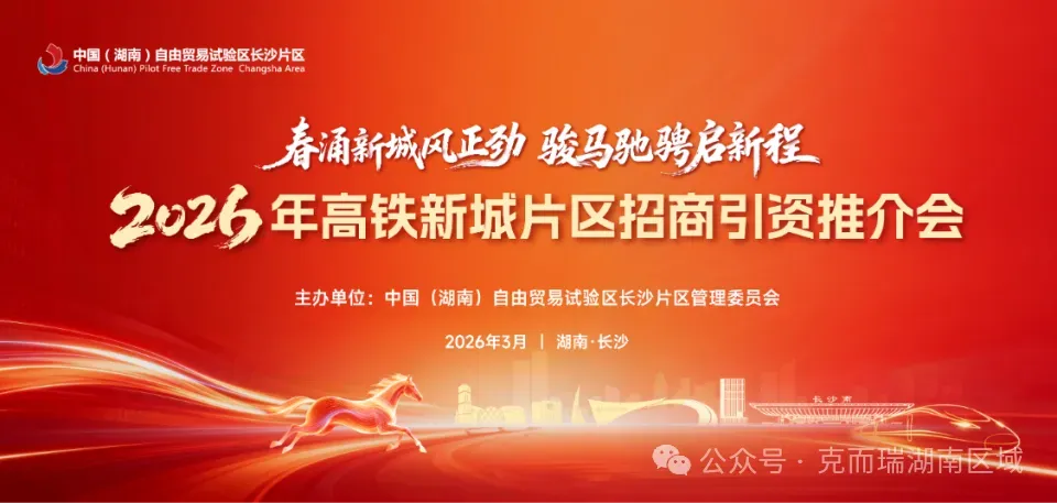 3月2日,2026年高铁新城片区招商引资推介会顺利举行,一场汇聚政企力量、共话发展机遇、共启合作新篇的盛会正式启幕。湖南省自贸办专职副主任谭浩然,市委常委、自贸区长沙片区党工委书记周敏,副市长钱丽霞出席活动,与各界企业家代表齐聚一堂,共探高铁新城发展新机遇,共绘合作共赢新蓝图。