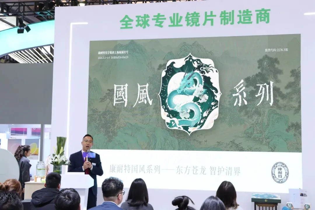 上午10:30,康耐特光学在展位发布区举办了「国风系列」新品发布会。阐述了康耐特光学如何从东方美学中汲取灵感,以光学科技凝练出承载文化内涵的镜片产品。