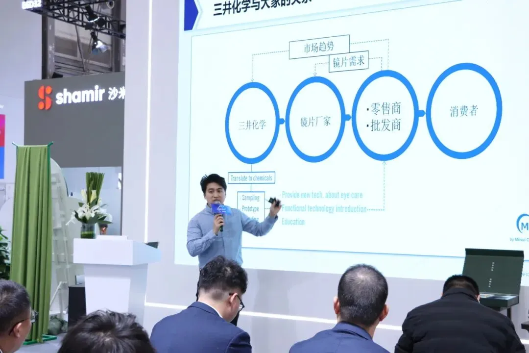 下午14:15,康耐特光学携手三井化学, 举办了MR材料技术分享会。三井化学技术专家亲临展位,深入讲解MR材料的性能优势与产品线布局,并为康耐特颁发了2026年认证书。
