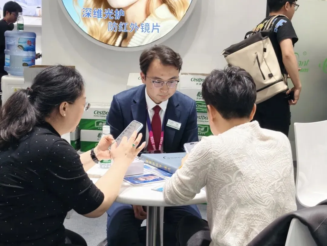 作为全球产品种类齐全的树脂镜片生产商之一,康耐特光学本次携自主研发的多款产品亮相展会:青龄PRO视觉管理镜片、深维光护防红外镜片、全景专家散光优化镜片等,旨在提供更优的视觉解决方案,为大家的视力健康保驾护航。