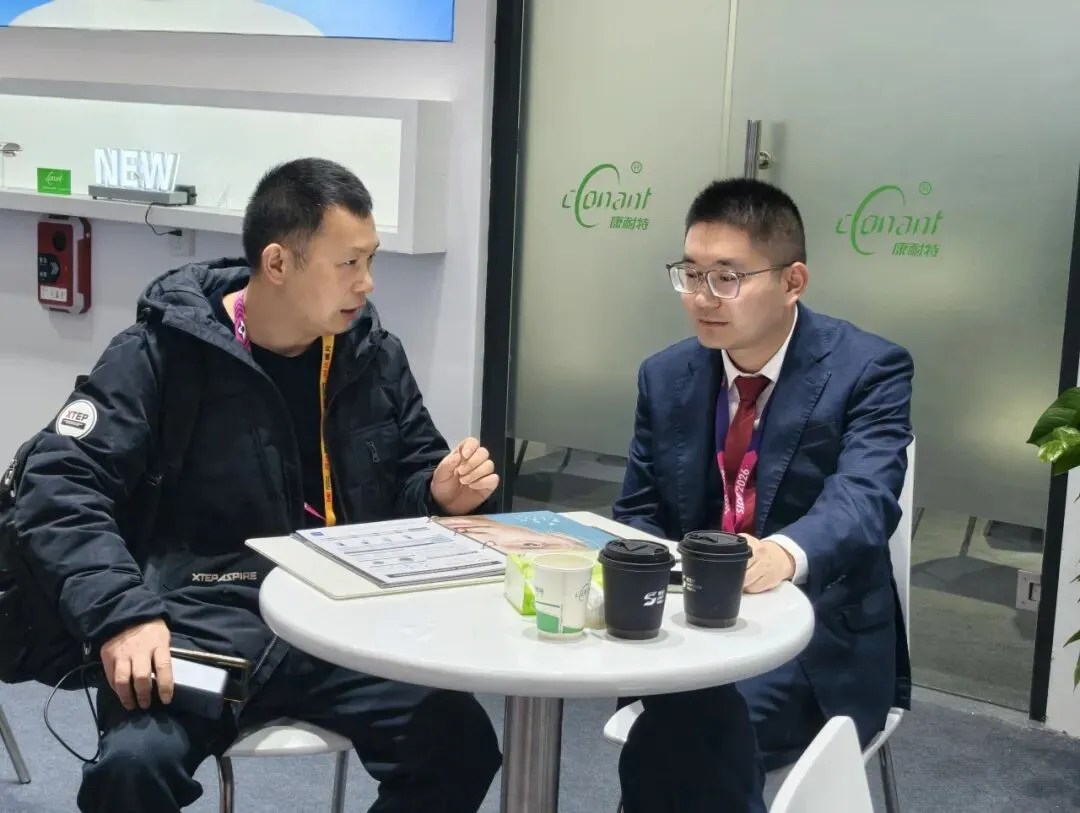 展会上,康耐特工作人员以专业、热情得态度接待每一位来往的客户,结合现场演示和道具体验,详细讲解产品亮点,现场氛围融洽热烈。