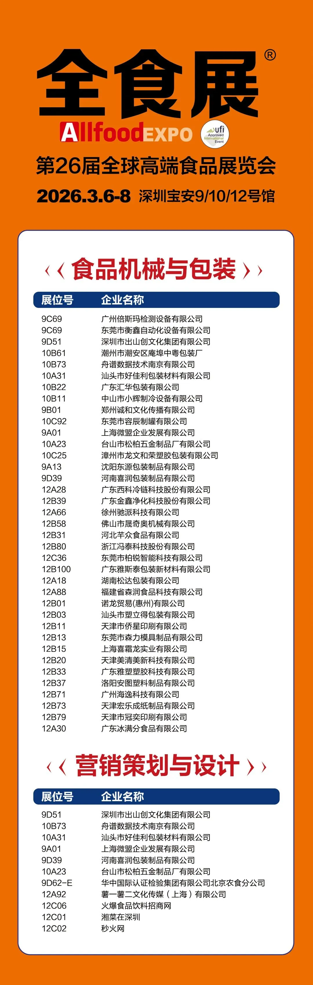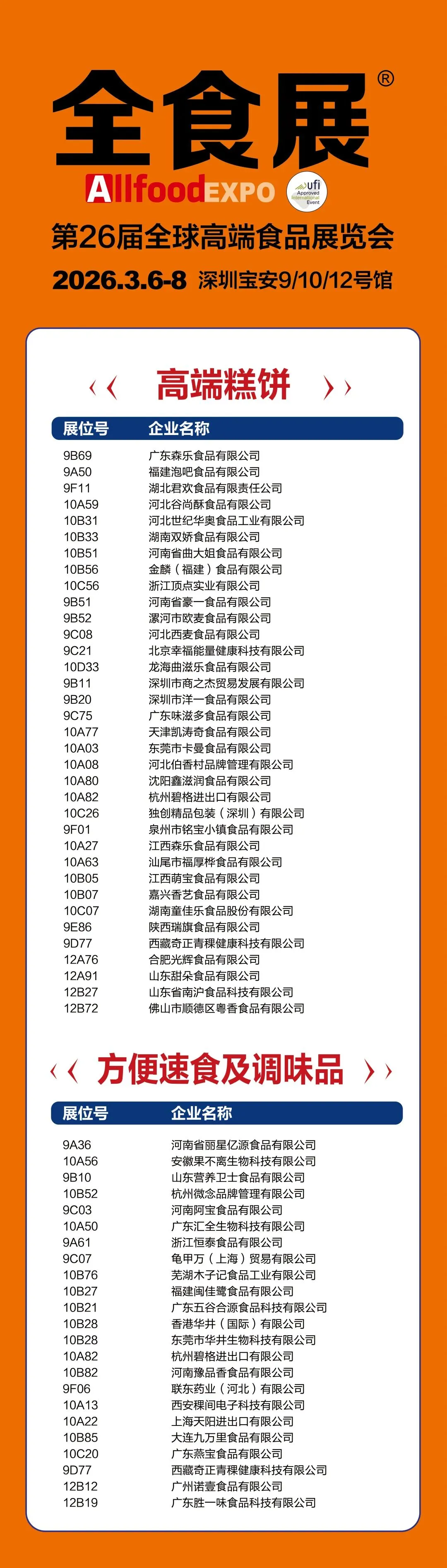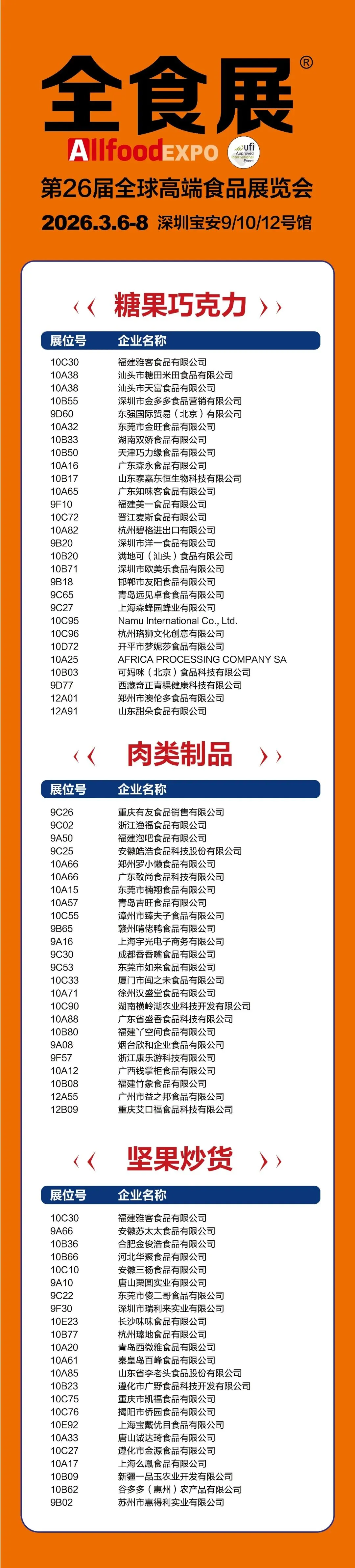 为了让更多国内外经销商、渠道商等专业买家高效、便捷地选到心仪的好产品。全食展组委会特将参展企业分为休闲食品、国际食品、无糖低GI、高端糕饼、方便速食及调味品、饮品与乳品、糖果巧克力、坚果炒货、果冻蜜饯、肉类制品、冰淇淋乳品、速冻食品、食品机械与包装、营销策划与设计等多个细分品类,进一步凸显本届全食展在产品品类上的丰富性,以及展会服务方面的专业性!