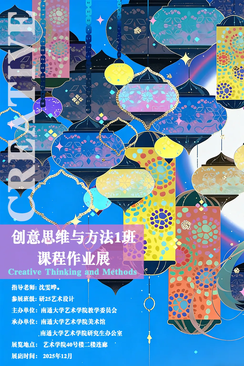 本次展览集中呈现研25艺术设计同学在课程中的阶段性成果:以创意思维训练为主线,围绕“发现问题—形成洞察—生成方案—表达落地”的路径,完成从概念到作品、从过程到呈现的系统输出。