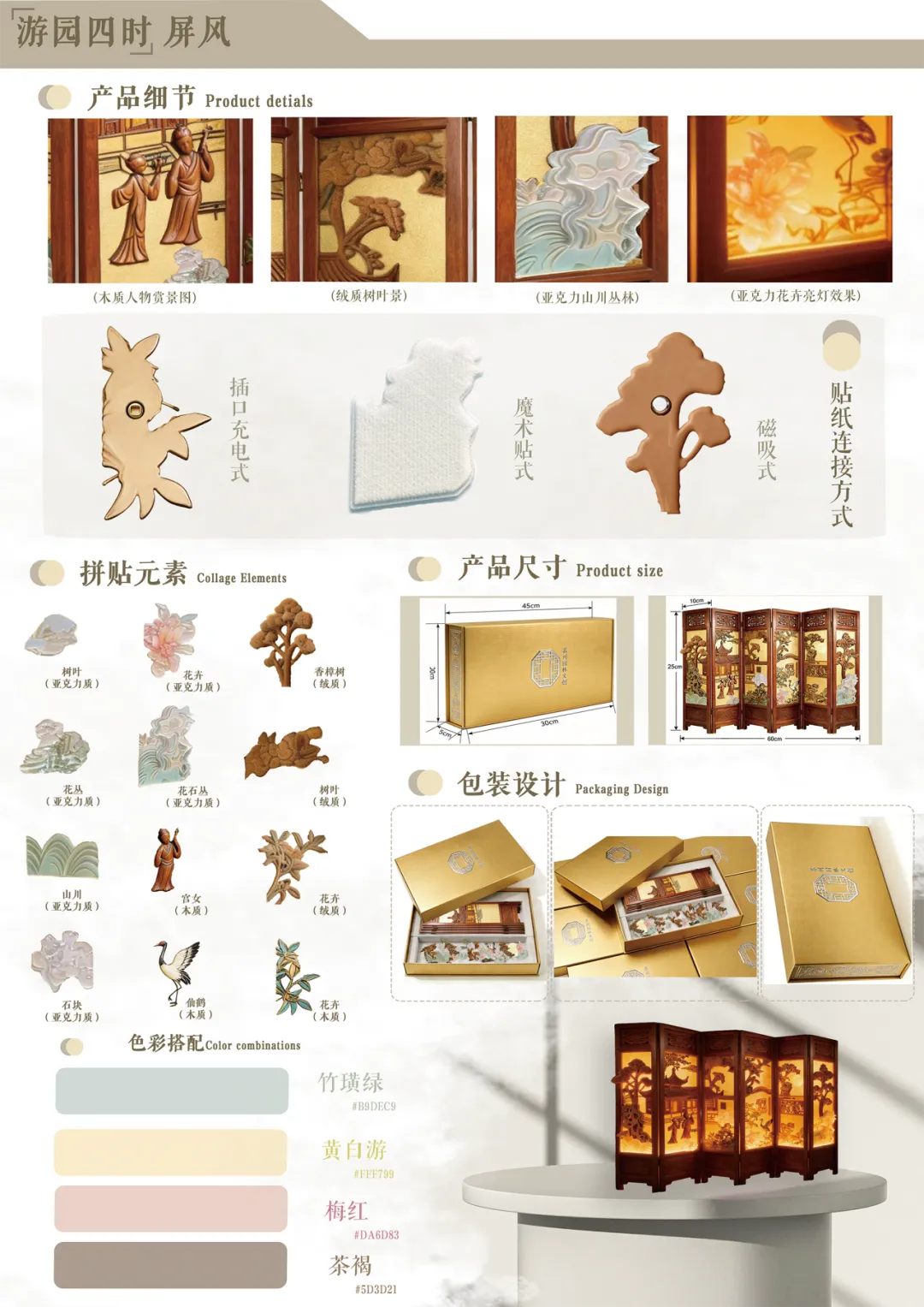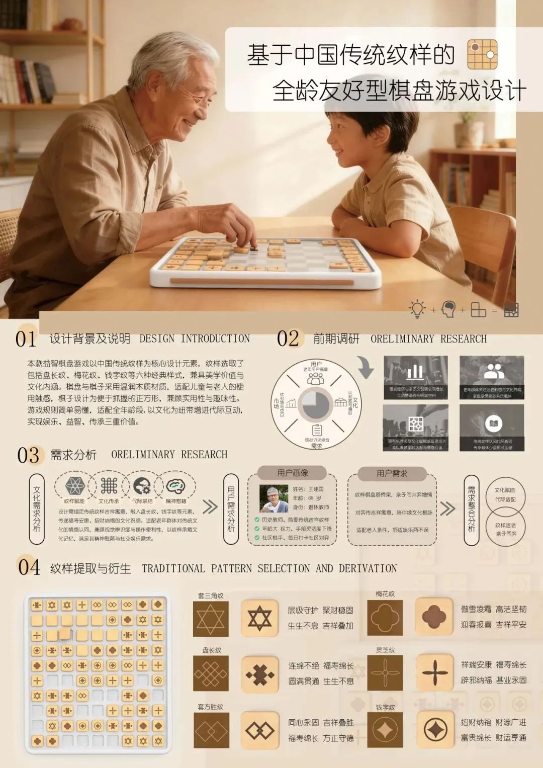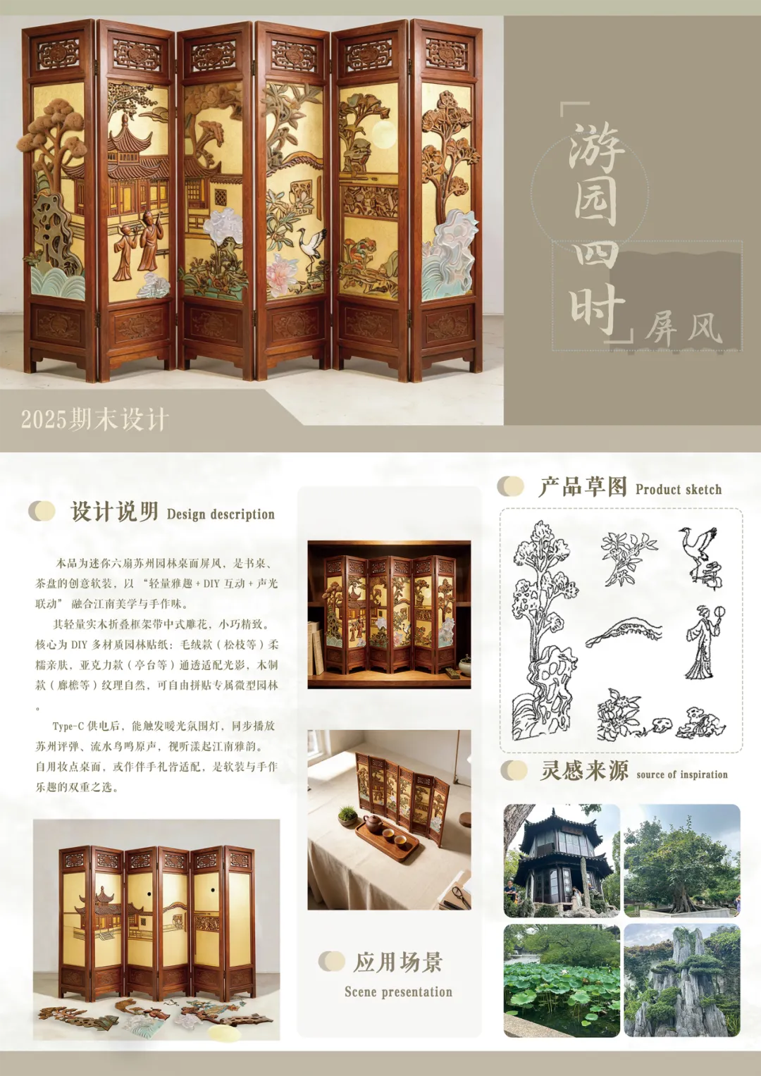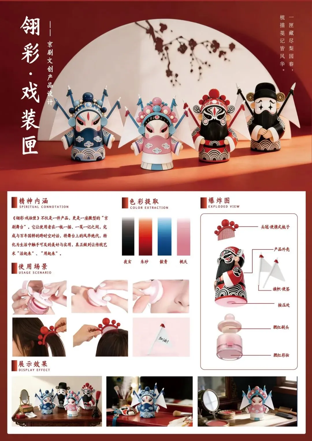 在课程训练中,同学们以“问题意识”为起点,尝试把文化、生活与当代需求连接起来:有人从传统节气与民间版画中重构时间叙事,有人以“四神纹”“传统纹样”等文化符号推进当代玩具与交互体验,也有人将城市记忆、非遗工艺、戏曲美学等转译为产品系统与展陈语言。作品的价值不止于“做得像”,更在于“想得清楚、说得明白、落得下来”——让创意从想象走向逻辑,从表达走向沟通。