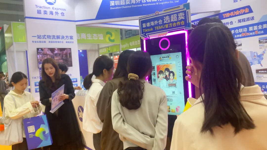 超卖海外仓推出的 “关注即送AI冰箱贴” 等活动,成为展会现场的人气亮点。活动区域内,不少参展嘉宾驻足停留,主动掏出手机扫码参与,部分时段甚至在打卡展板前形成小范围排队,大家在完成打卡的同时,也进一步了解了超卖的服务优势,实现 “趣味互动 + 信息传递” 双效落地。