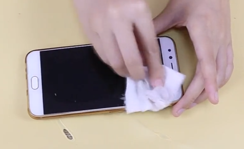 然后我们用它来擦拭我们的手机屏幕。因为白酒中含有酒精,能够有效的杀菌消毒,而且屏幕也会变得非常的干净。擦拭好之后,我们准备好一块干净的纸巾,用它来擦拭干净,这样擦拭手机屏幕不仅能把手机屏幕清洁的非常干净,而且还不会留有水渍在上面,下次我们再用手指按的时候也不会有指纹印了。