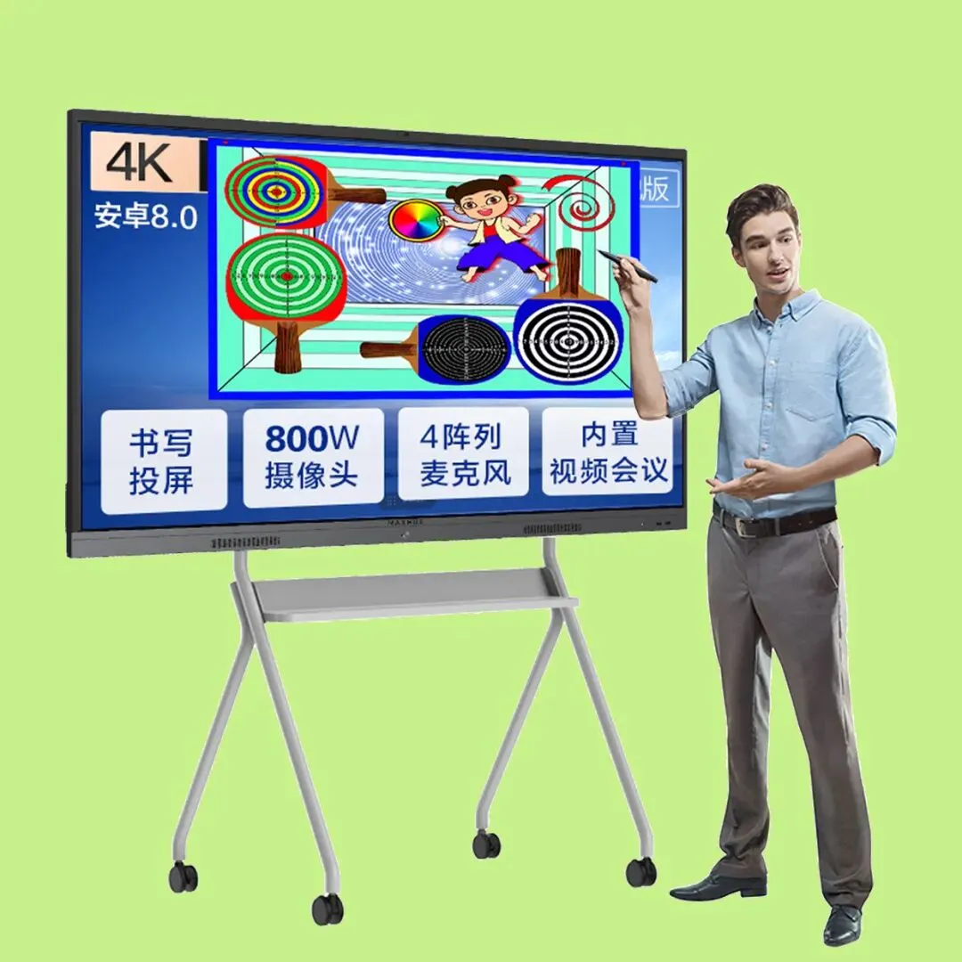 大屏幕智能白板是一种集成了电脑、投影、书写和电视等多种功能于一体的现代化教学和会议设备,能够实时展示教学资源,促进远程交流合作,实现个性化教学和学习,节约资源和提高效率。大屏幕智能白板的屏幕包括钢化玻璃保护层、电容式触摸屏和高性能屏幕显示器等结构部件,并配置摄像头等硬件。