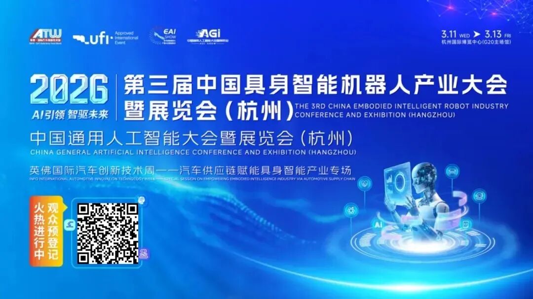 点击阅读原文,报名参加2026第三届中国具身智能机器人产业大会暨展览会(杭州)