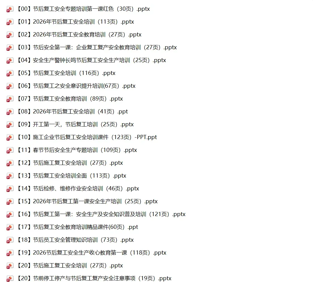 小安整理60篇2026年春节节后复工复产安全精品PPT及文档!陆续上传,供大家参考借鉴!减少您大费周折找资料的时间!