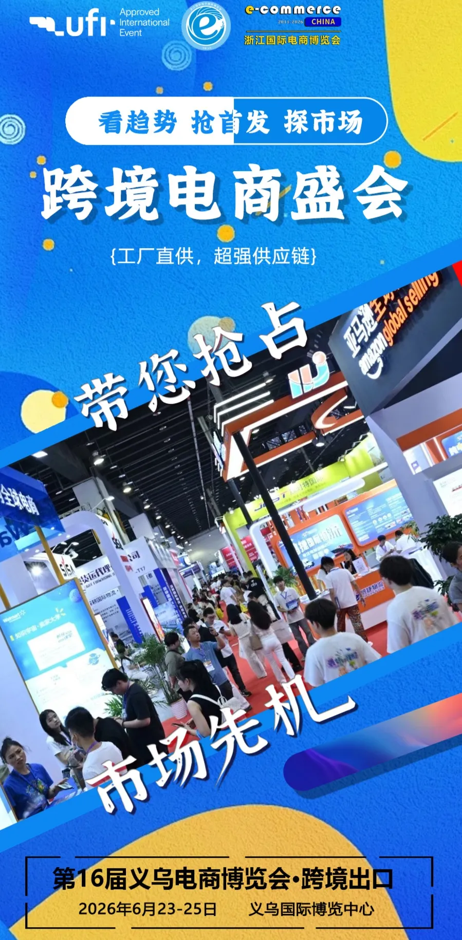 2026年6月23-25日,2026义乌电商博览会·跨境出口将在义乌国际博览中心盛大举办。 本届展会预计将吸引超10万名国内外专业采购商,共赴这场电商·跨境商贸盛会。
