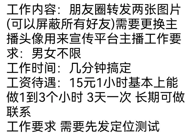 【济南兼职】线上朋友圈兼职,15-45元/1-3小时