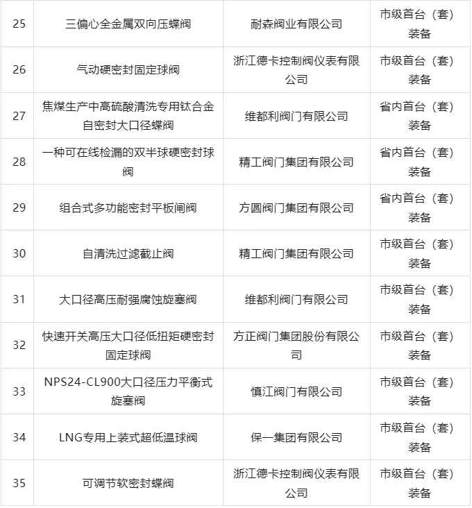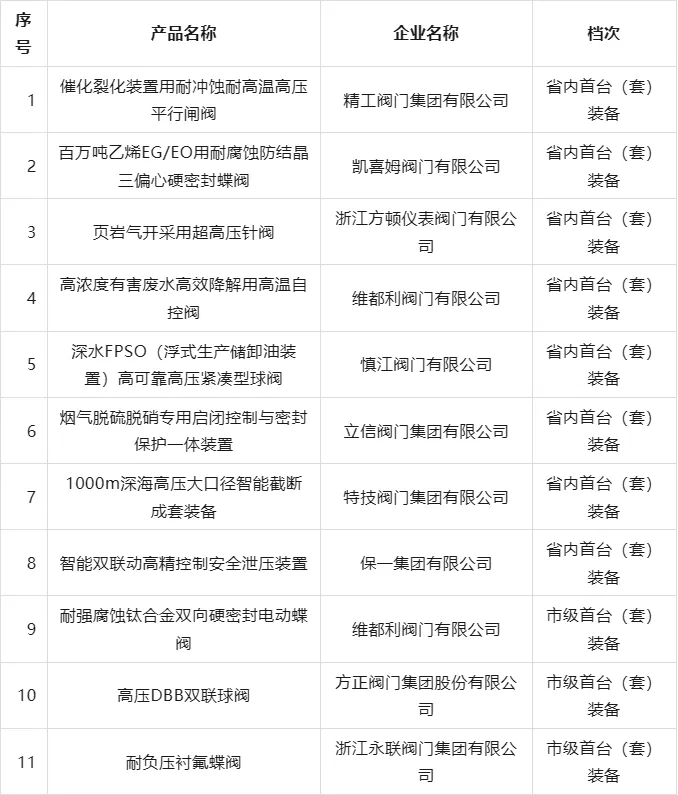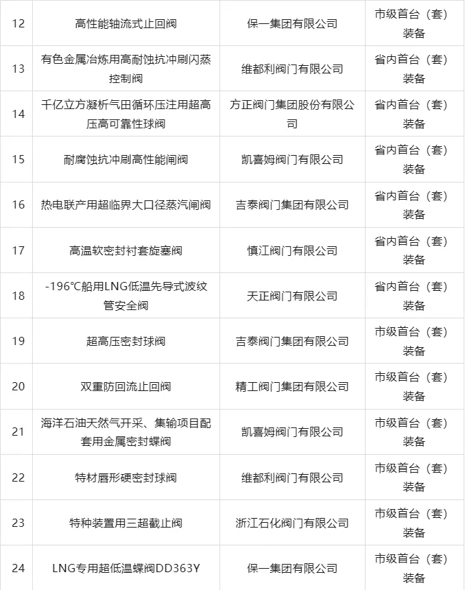 以下是温州阀门行业首台(套)产品推广应用指导目录(2026版)名单: