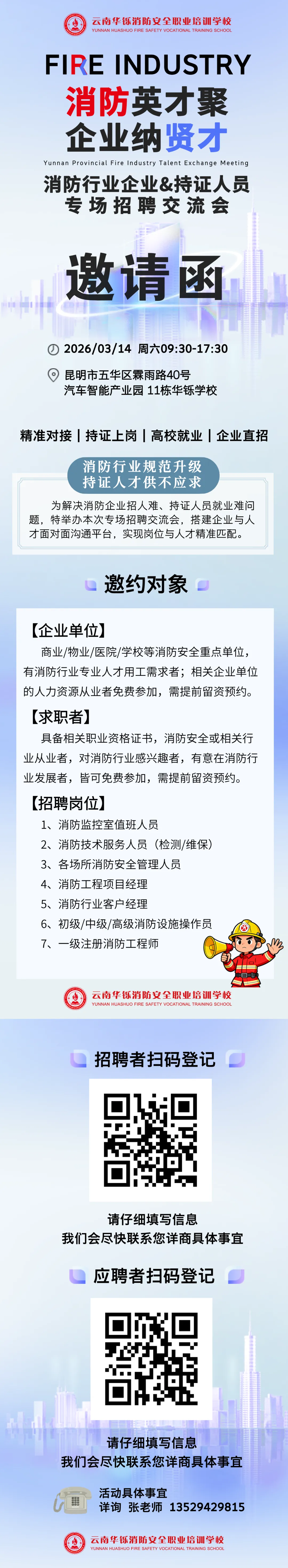 消防英才聚 企业纳贤才|消防行业企业&持证人员专场招聘交流会,期待您的参与!
