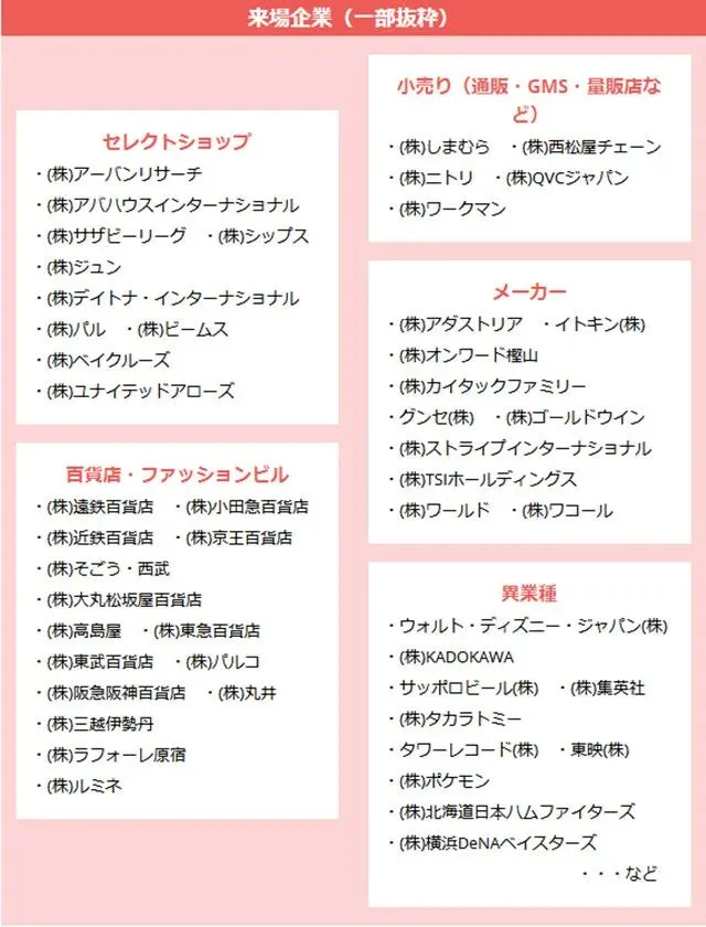 FaW Tokyo 2026春有9个专门展区组成: