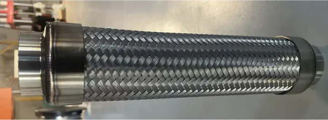 应用场景:应用于航天液体火箭发动机,泵后高压摇摆软管。能够在高压及大摆角下,保持结构强度,防止疲劳断裂,保证足够弹性以完成摇摆动作,同时补偿位移并控制应力。耐受低温推进剂的极端温度和腐蚀,应对发动机强振动、流体脉动等多源激励,防止共振。在摇摆、振动和压力冲击下,确保连接处密封零泄漏。