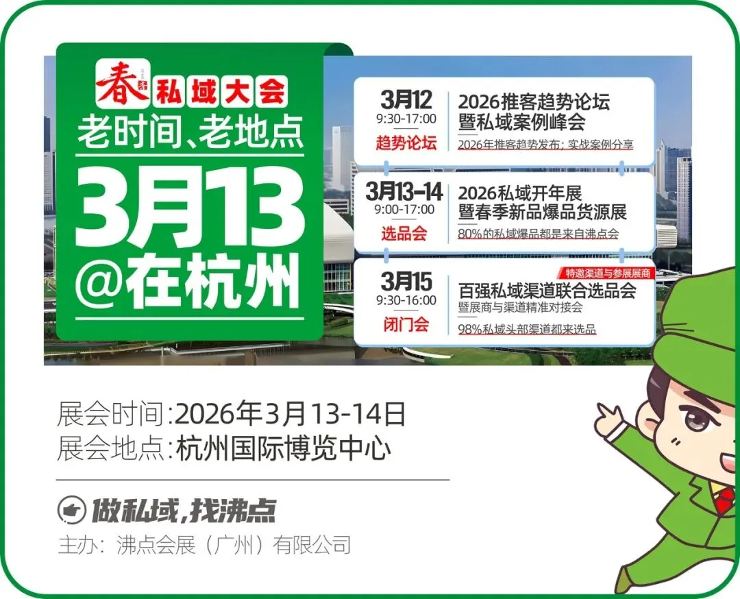 一年之计在于春!不管是渠道,还是供货商,都会关注新一年私域的新趋势与玩法。沸点会作为“私域风向标”,每年3月的杭州私域大会,一直是全年最受关注的一场大会。