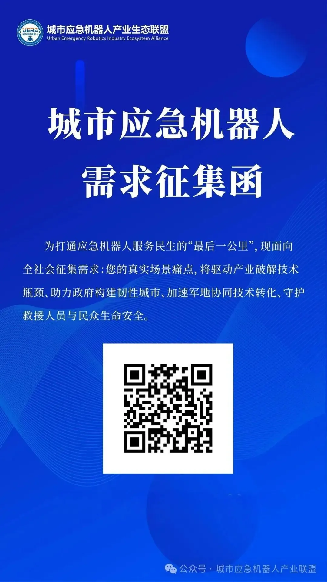 为打通应急机器人服务民生的“最后一公里”,现面向全社会征集需求:您的真实场景痛点,将驱动产业破解技术瓶颈、助力政府构建韧性城市、加速军地协同技术转化、守护救援人员与民众生命安全。让我们共同点亮科技守护生命的曙光!