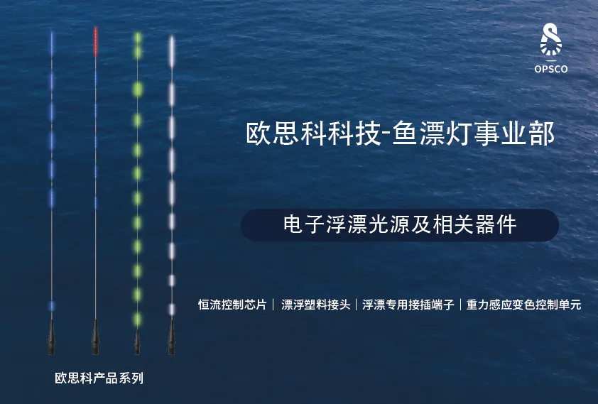 欧思科科技鱼漂灯事业部主要从事各种电子浮漂LED光源及相关器件的研发、生产和销售,产品包括各种浮漂发光光源、恒流控制芯片、重力感应变色控制单元、浮漂电池专用接插端子、浮漂塑料接头等。