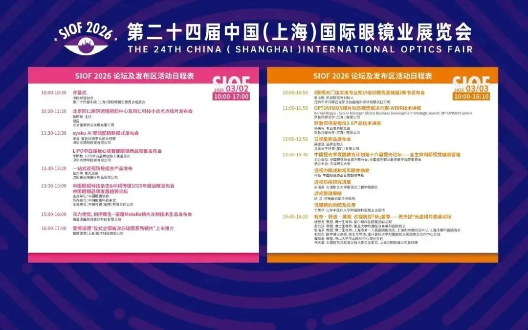 今天是2026上海眼镜展开展的第二天,现场热度不减!如果您正在展会现场,想必已经感受到了各大展馆的人潮涌动与学术论坛的浓厚氛围。特别是N2馆论坛区,今天从早到晚干货不断,堪称视光人的知识盛宴!如果您还未到场,别急——展会还有明日最后一天,抓住机会!