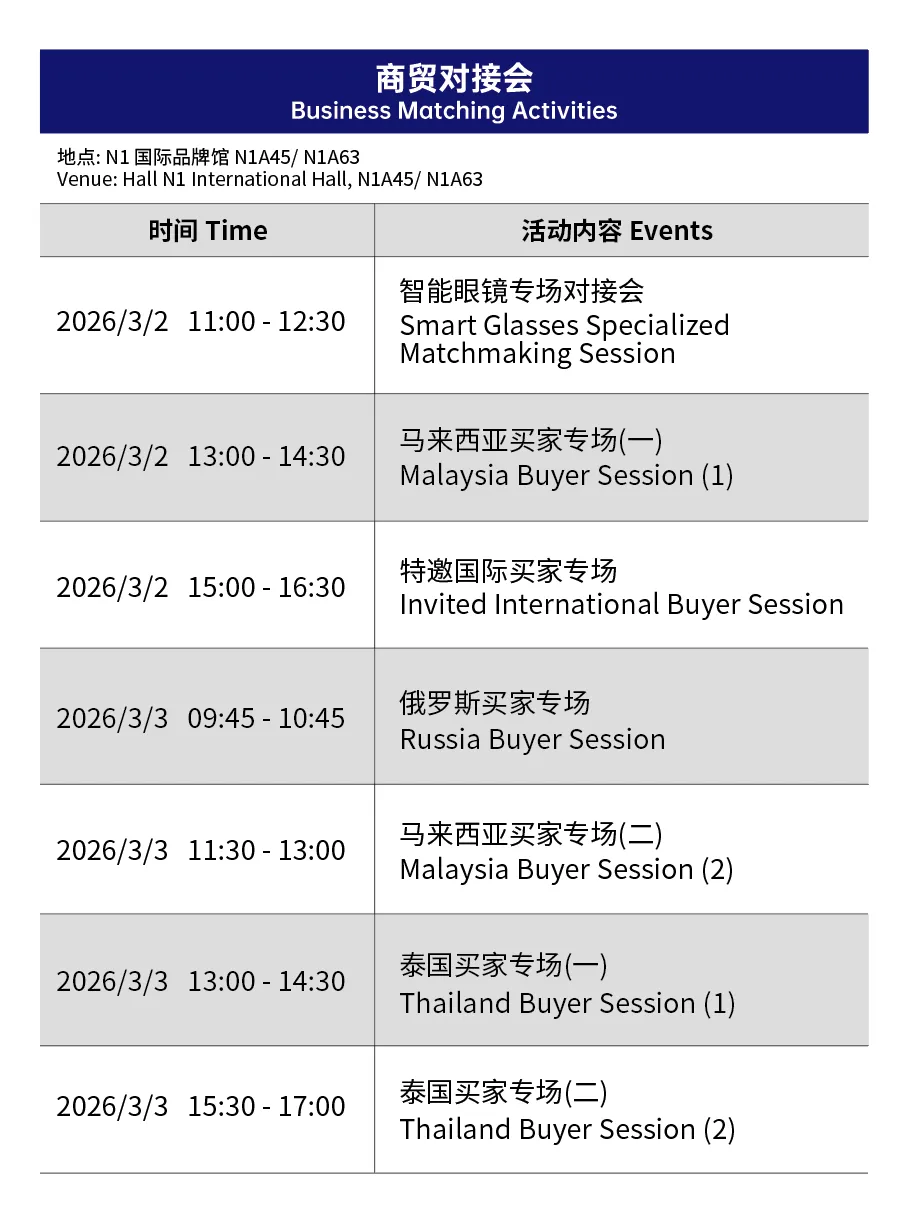 根据官方日程,今天有多场国际买家专场对接会在N1馆举行: