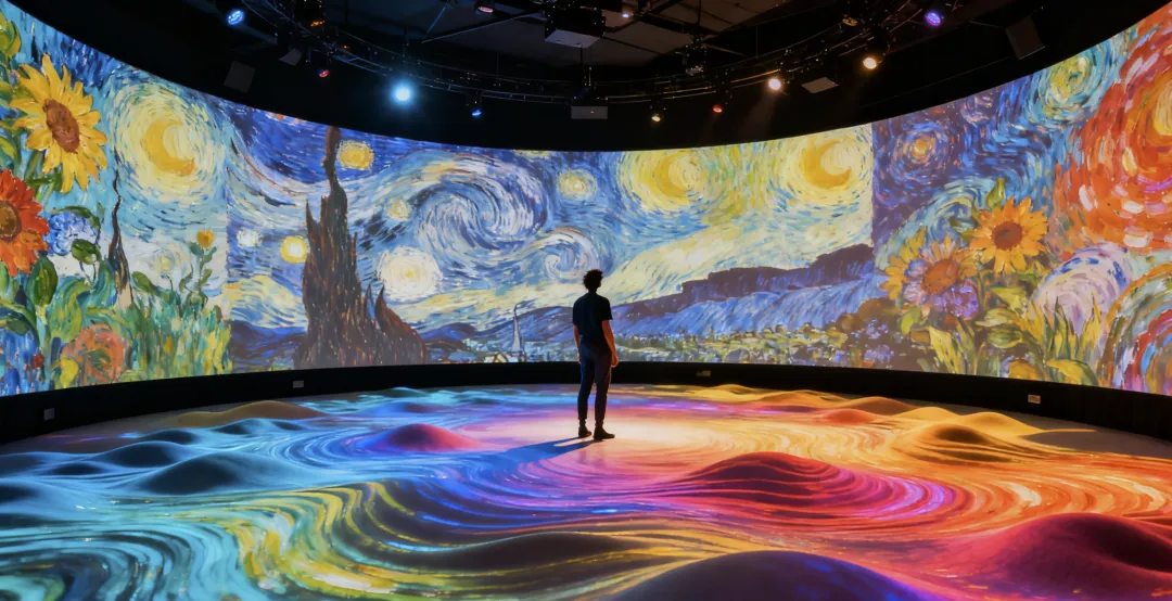 整合数字投影、AR互动,投影秀技术是打破这一僵局的创新突破口,它能将艺术转化为可参与的动态旅程,将物理展厅转化为虚拟画廊,让雕塑“活”起来。