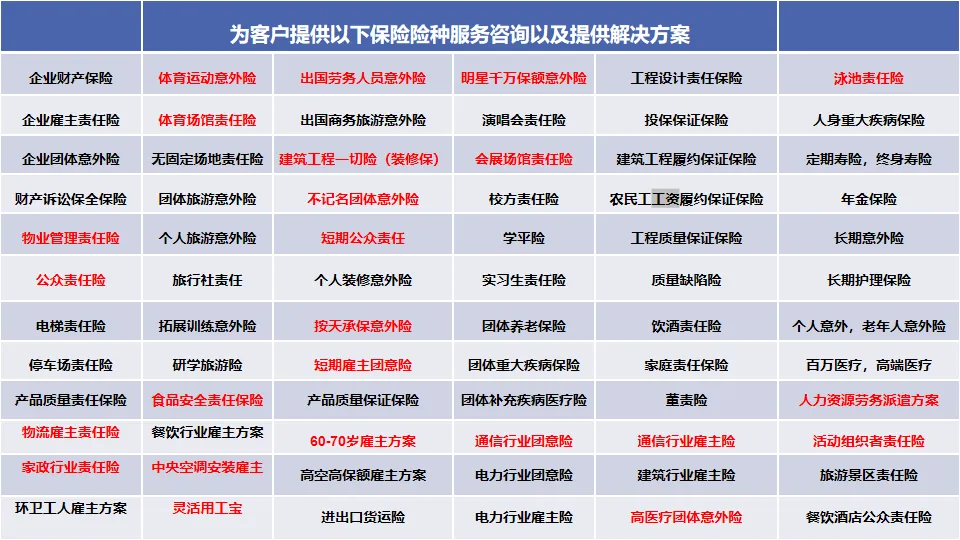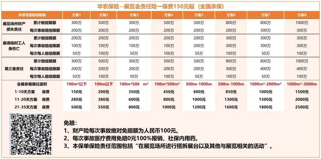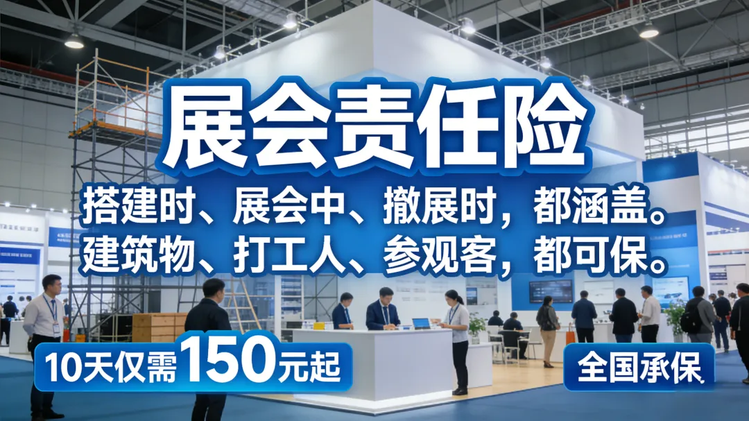 从布展开始到撤展完成,常见的风险如员工的意外、对场地及设施造成的损坏以及来展加展会的参观客户的意外,都需要重视,现在只需要一张保单,这些赔偿责任都可以转移到保险公司来承担。