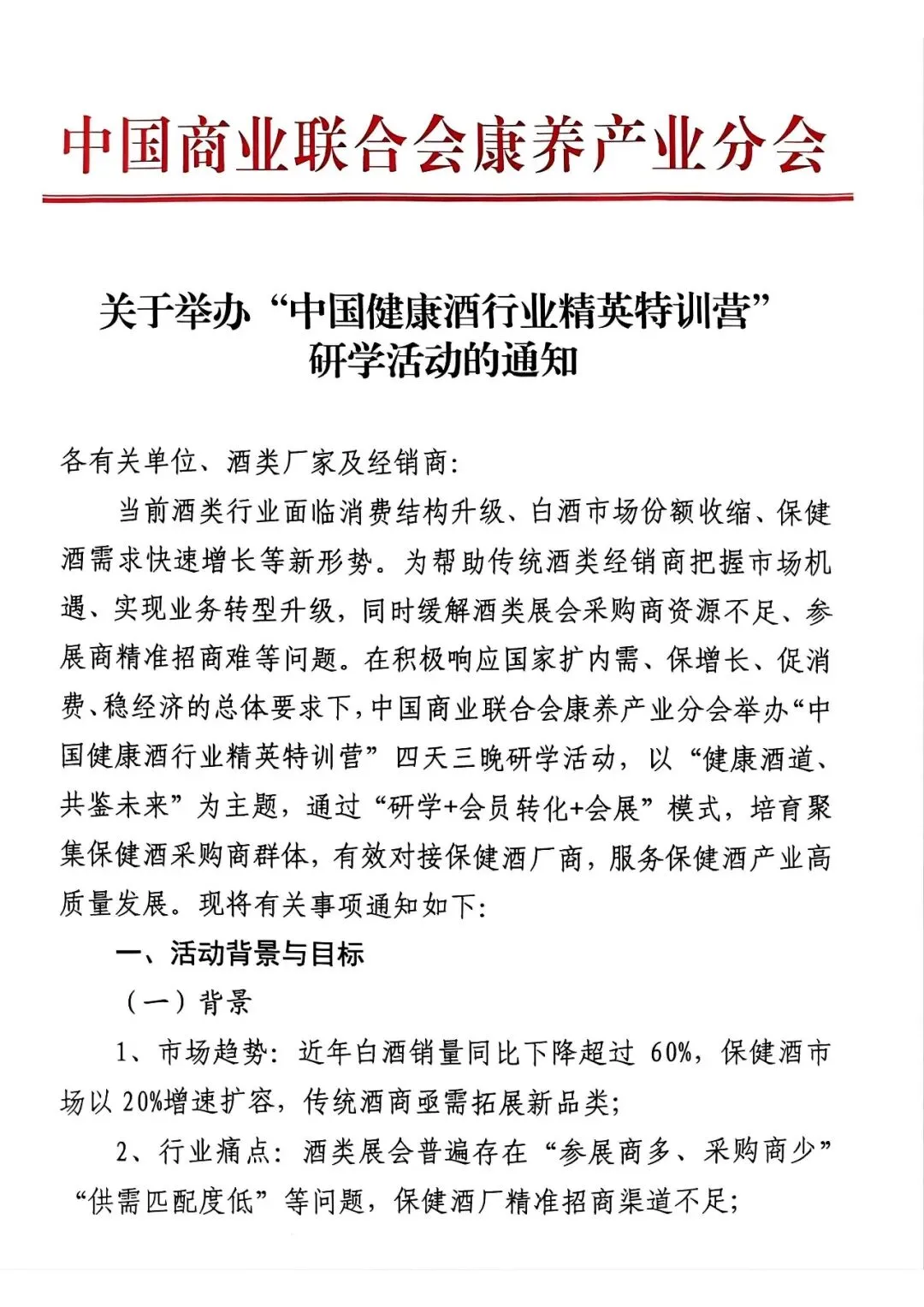 中国健康酒行业精英特训营研学活动通知