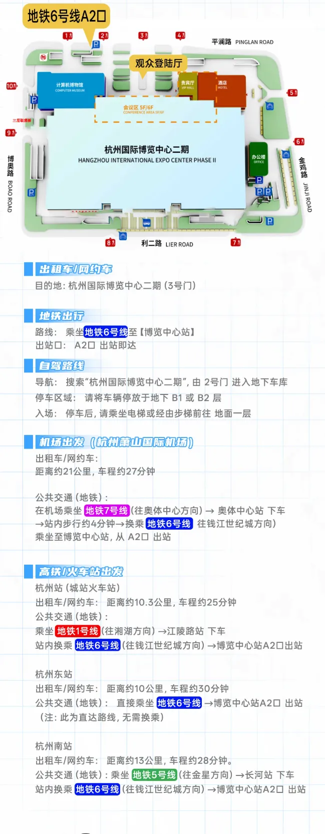 地铁:地铁6号线,至国博中心A1出口