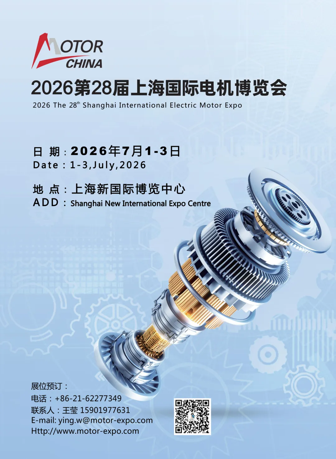 温馨提示:上海电机展览会火热报名中,提前预订即可享受主通道或双开口位置!如有意参展,还望您尽快联系我,好位置先订先得,早订早宣传!http://www.motor-expo.com