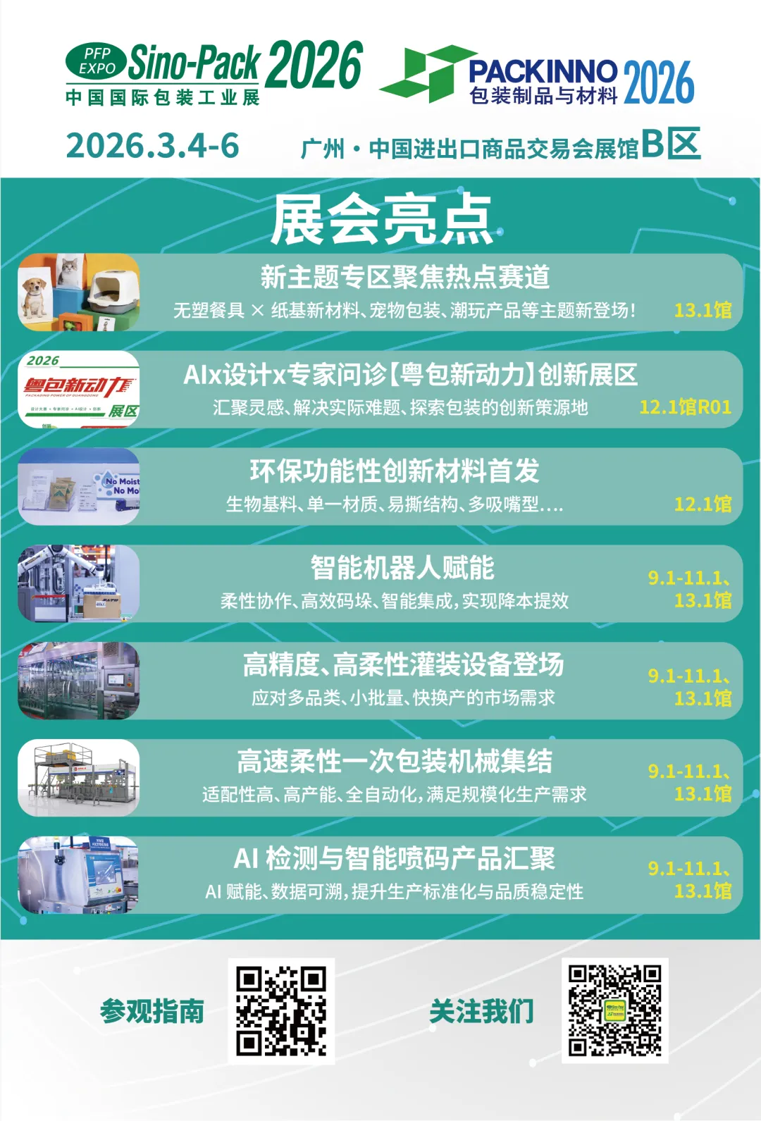 包装设备展:B区1楼 9.1-11.1馆、13.1馆
