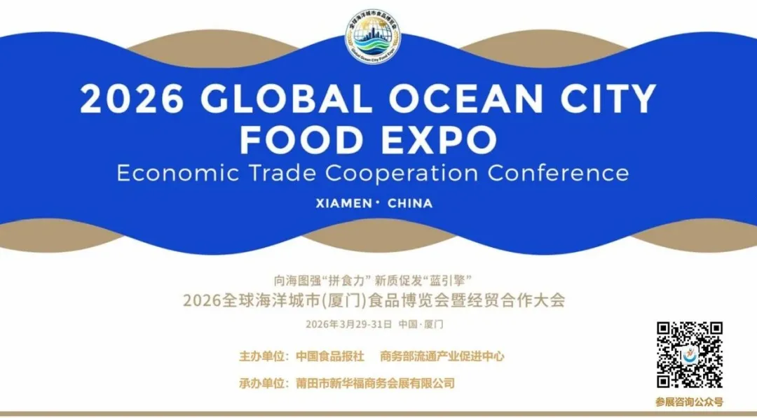 3月29日至31日,2026全球海洋城市(厦门)食品博览会暨经贸合作大会将在厦门国际会展中心举办。展会聚焦海洋食品全产业链,覆盖预制菜冷链、海洋功能食品、传统食品食材、渔业装备等细分领域,并创新设置线上元宇宙云展厅,实现365天全天候服务,为全球海洋食品产业搭建高效对接、深度融合的全新平台。