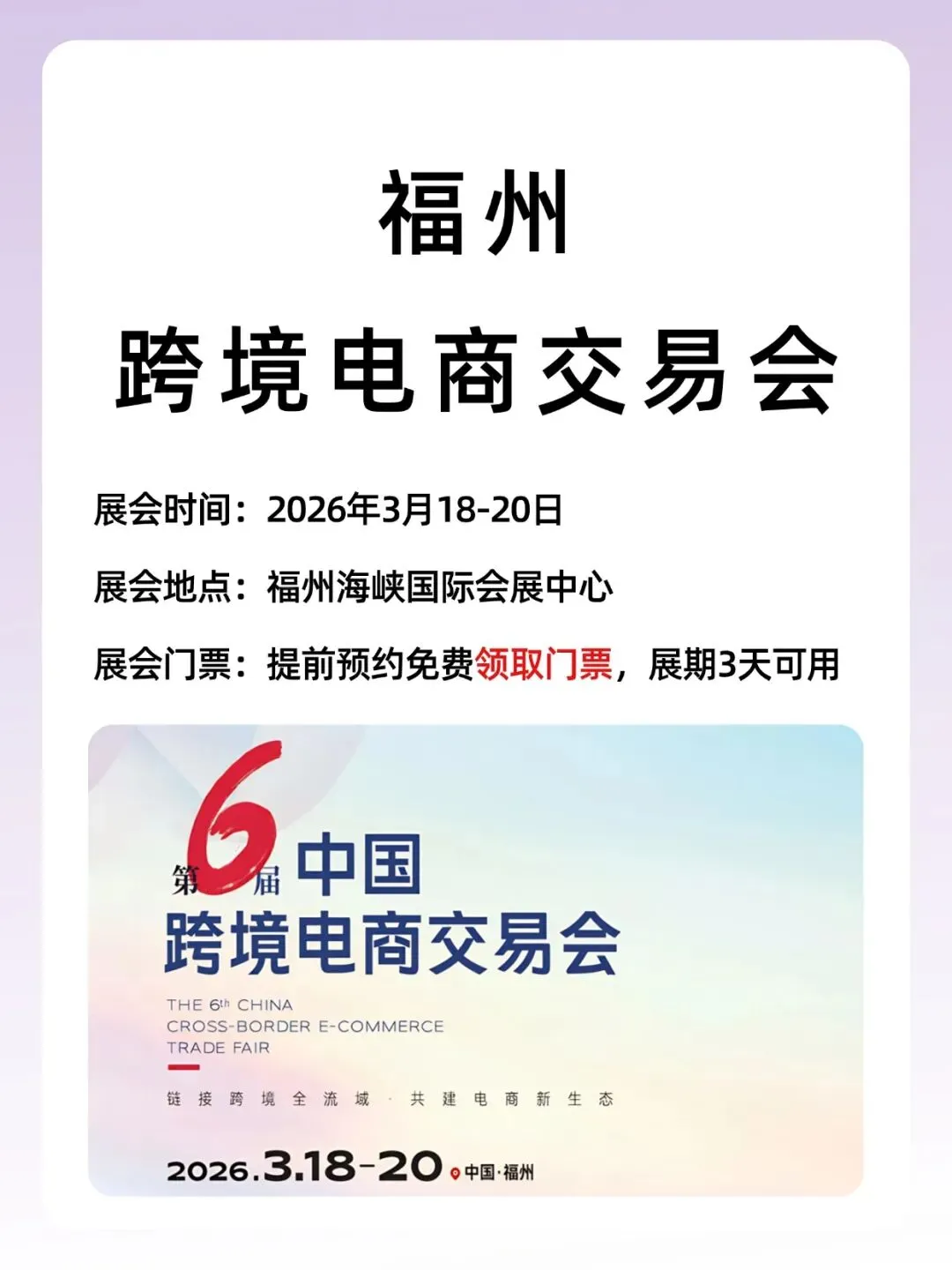 2026中国(福州)跨境电商交易会,简称:2026福州跨交会,时间定于2026年3月18-20日,地点在福州海峡国际会展中心举行!