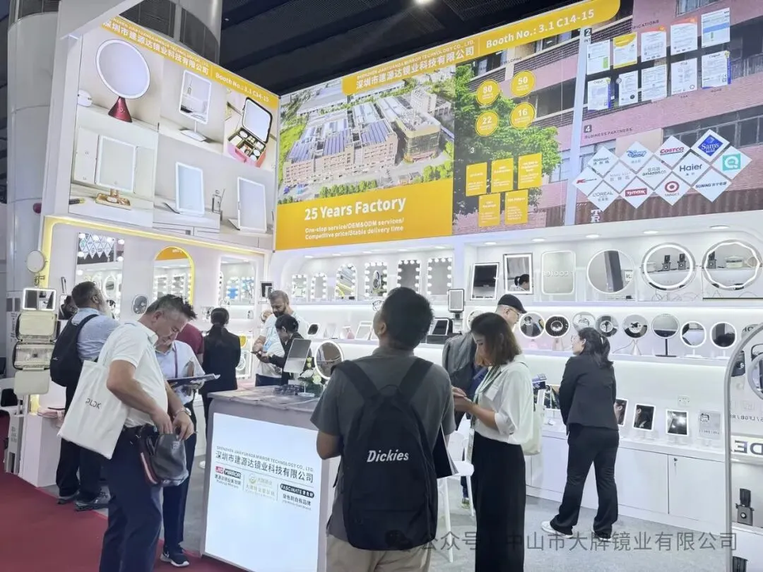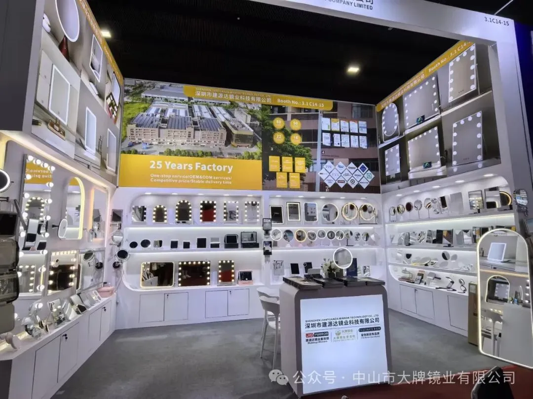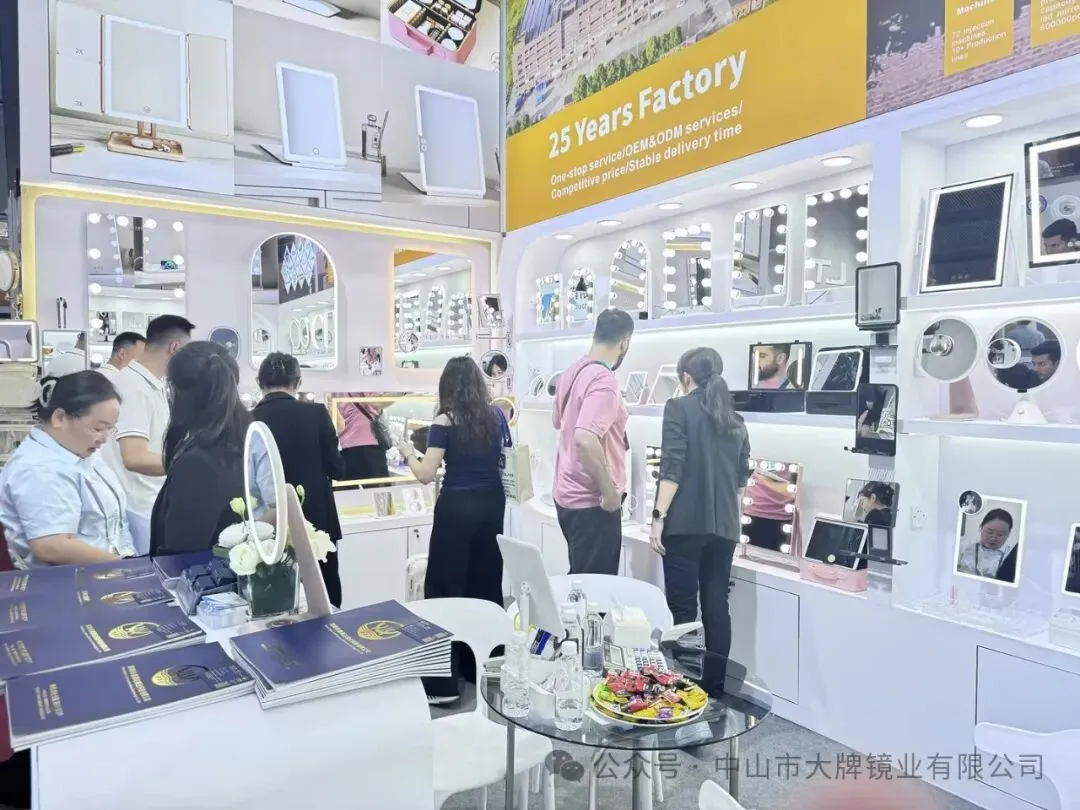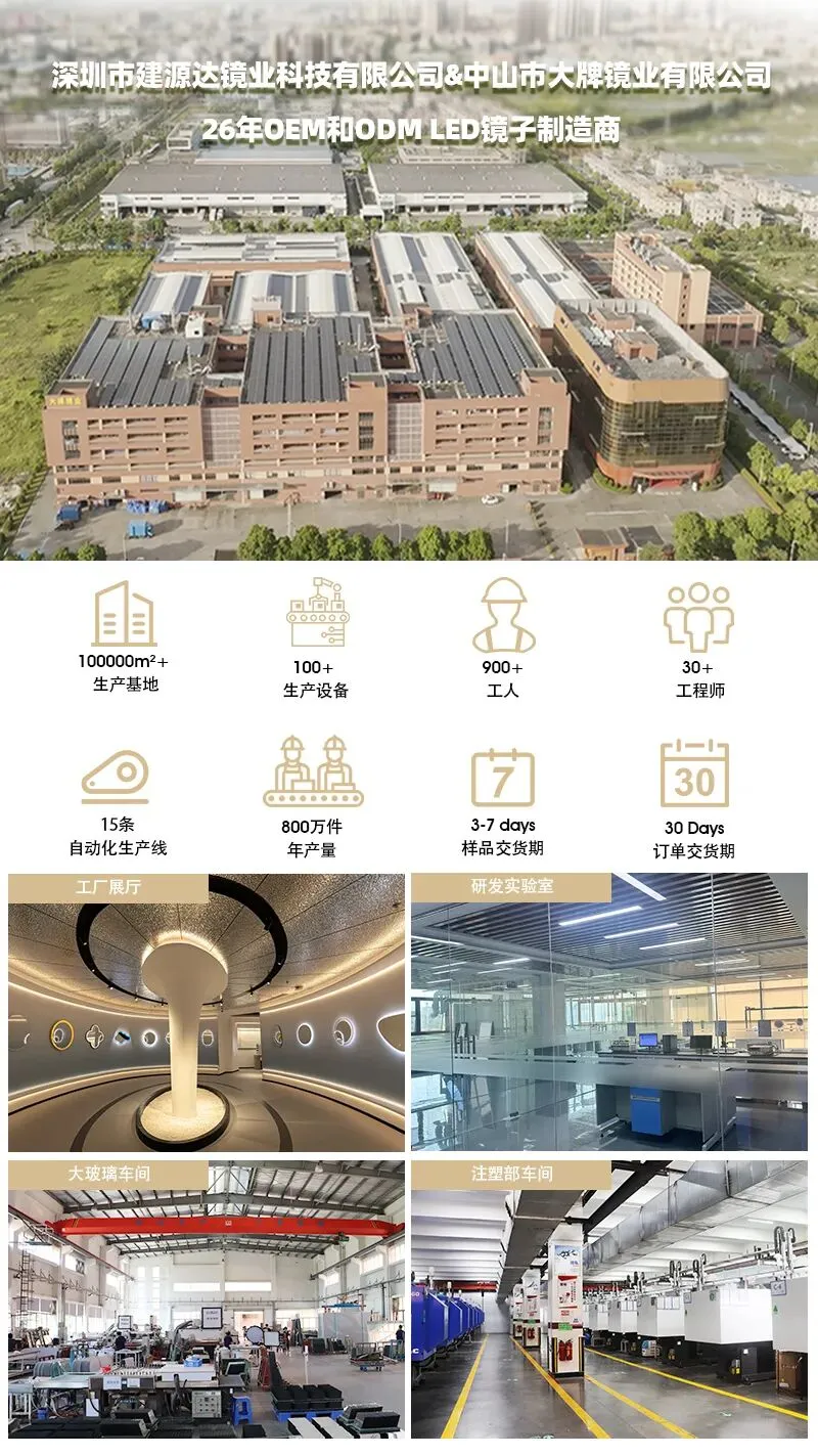 【公司地址】:粤港澳大湾区中山市大牌镜业有限公司【公司产品】:镜片、AI测肤镜、化妆镜、智能浴室镜、镜柜、穿衣镜、好莱坞灯泡镜,符合国内外一系列认证标准【公司实力】:27年深耕镜业经验,10万平产业园区,超30人研发团队,拥有国内领先设备的玻璃加工、模具、注塑、SMT、组装及纸箱车间,目前已获得海内外专利360多项,是⼀家集研发、生产、销售于一体的大型智能镜综合⽣产企业。【合作伙伴】:迪士尼、雅诗兰黛、卡姿兰、小熊电器、网易严选、希尔顿酒店、香格里拉、千禧、维也纳酒店、costco、沃尔玛等【企业使命】:缔造镜业王国,服务千家万⼾