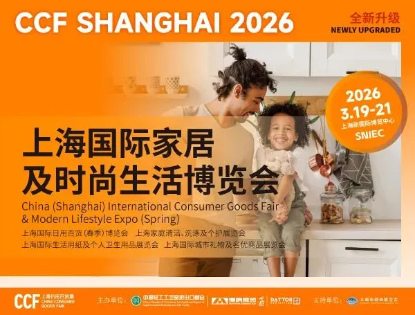 CCF上海国际家居及时尚生活博览会(简称:CCF家居生活博览会)是由中国轻工工艺品进出口商会、上海德纳会展有限公司、上海德钛展览有限公司联合主办,将于2026年3月19-21日在上海新国际博览中心璀璨启幕。