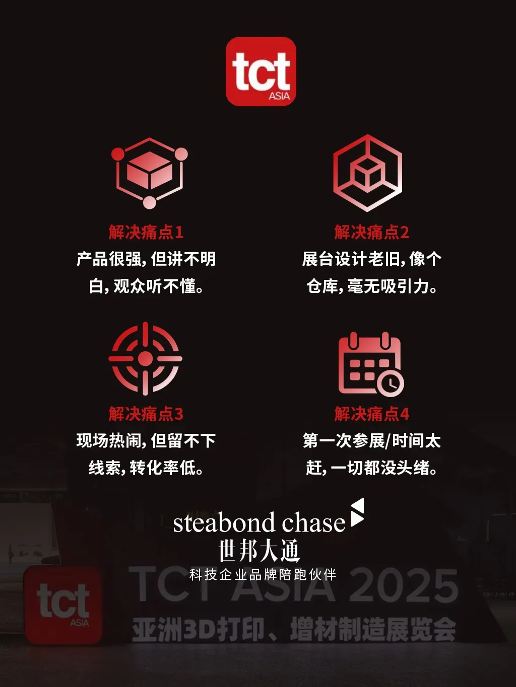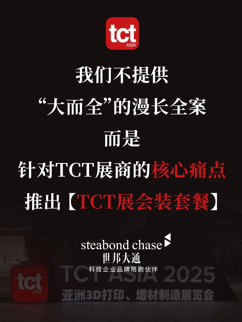 我们不再提供“大而全”的漫长全案,而是针对2026亚洲3D打印、增材制造展览会TCT展商的核心痛点,推出 【TCT展会装套餐】。