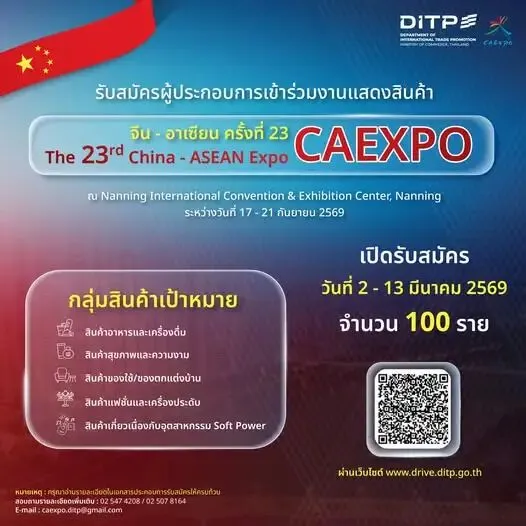 ? 第23届东博会初步定于2026年9月17-21日在中国南宁举办,目前泰国馆的招展工作已经开始了,诚邀感兴趣的泰国企业报名参展。