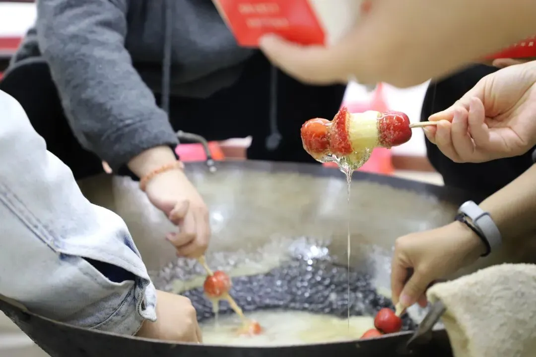活动现场精心打造四大互动体验区,每一处都藏着别样惊喜!“福字创作区”笔墨纸砚整齐陈列,书法达人与新手小白皆可挥毫,将新春期许与生活祝福融进笔墨,定格专属元宵仪式感;“冰糖葫芦DIY区”,红彤彤的草莓、黄澄澄的香蕉、脆生生的山楂任选,裹上滚烫的现熬糖浆,酸甜滋味瞬间唤醒童年记忆;“猜灯谜区”悬挂百余条谜语,涵盖传统文化、生活常识与趣味脑筋急转弯,猜对即可兑换精美小礼品;“套圈游戏区”备好精美礼品,站定、瞄准、投掷,考验手眼协调之余,更能试试新年好彩头!除了趣味互动,现场更有软糯香甜的手工麻糍,让大家在忙碌工作间隙感受到“家”的温暖。