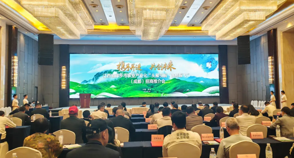 3月25日下午,萍乡市农业产业化“头雁引航・雏鹰振飞”(成都)招商推介会同步举行。市委副书记鲍峰庭出席推介会并致辞,重点推介萍乡作为湘赣边仓储物流基地和农产品加工基地的区位优势,以及绿色食品产业全链条扶持政策等。市农业农村局局长景国成详细解读我市农业发展情况和产业优势,成都萍乡商会、百约食品等企业代表分享合作经验。会议现场还集中签约了一批供应链建设、农产品精深加工、预制菜、农业种植等项目。
