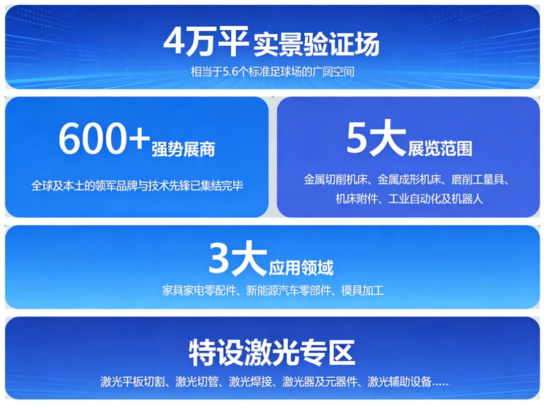 以40,000㎡的宏大规模,汇聚600+家产业链核心企业,全面覆盖金属切削机床、金属成形机床、磨削工量具、机床附件、工业自动化及机器人等全品类装备,致力于在开春复工的关键节点,为华南产业注入强劲动能,助力每一位参与者赢在开局,抢占全年先机。
