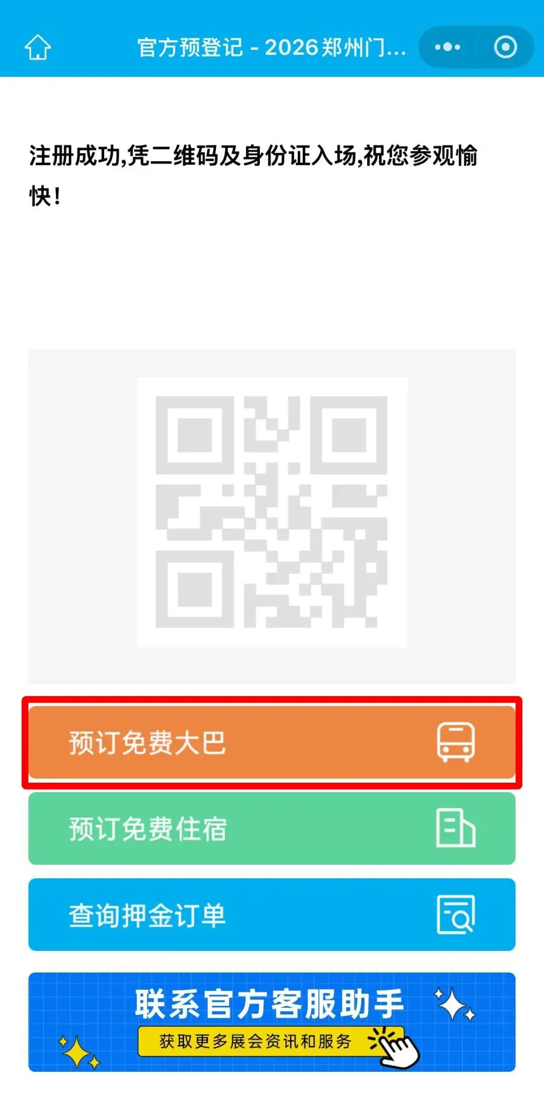 展会期间,组委会以郑州为中心,为周边500公里半径内的观众提供观展大巴免费接送服务,若有乘车需要,可点击“预订免费大巴”。