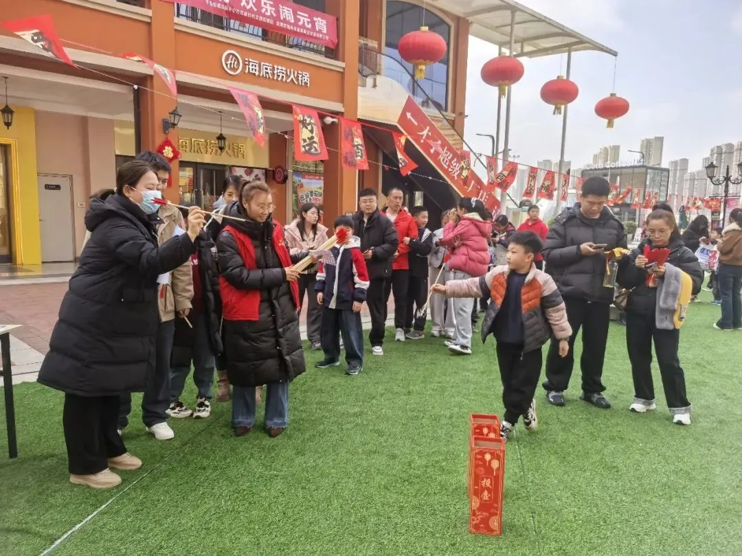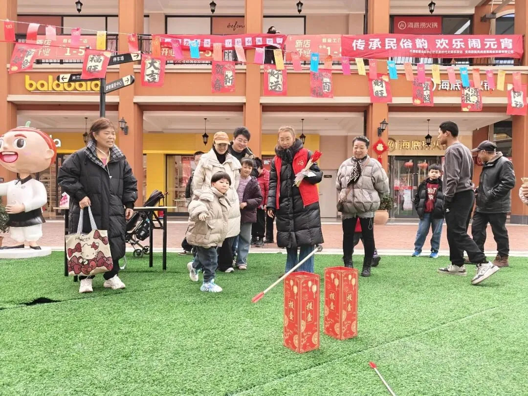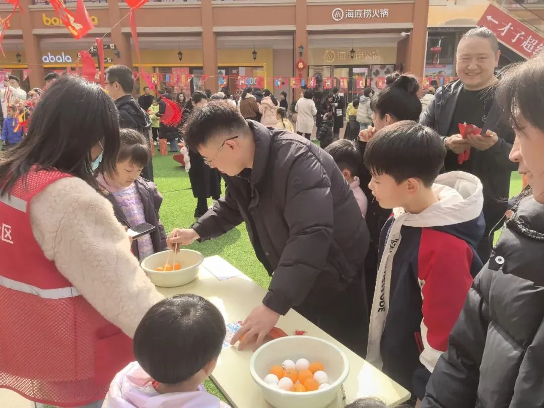 作为本次活动的重要组成部分,会展中心社区精心设置的民俗游戏区更是人气爆棚。为了让居民们沉浸式体验传统民俗,会展中心社区出资采购了游戏道具与奖品。夹汤圆、投壶、套圈等经典小游戏,吸引了各个年龄段的居民踊跃参与。在 “夹汤圆” 区,居民朋友们手持筷子,小心翼翼地夹起汤圆来回移动;“投壶” 区里,大小朋友们屏气凝神,瞄准壶口精准投掷;“套圈” 区前,居民们排起长队,期待能将心仪的礼品收入囊中。每一个游戏摊位前都洋溢着欢乐的气息,成功通关的居民可获得社区准备的精美小礼品,在收获快乐的同时,也感受到了浓浓的节日温情。