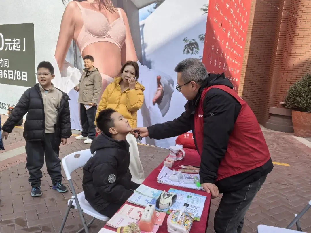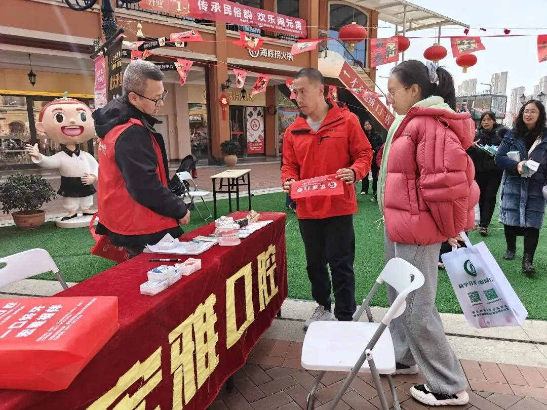 除了传统民俗体验,本次活动还将公益宣传与健康科普融合,传递社会正能量。活动现场设置了垃圾分类宣传和烟花爆竹禁燃禁放宣传专区,工作人员通过发放宣传手册、现场讲解等方式,向居民普及垃圾分类的分类标准、投放技巧,引导大家树立绿色环保、安全文明的生活理念,并详细解读禁燃禁放相关规定,阐明烟花爆竹燃放对人身安全、空气质量及环境卫生的危害,倡导大家采用电子爆竹、悬挂灯笼等环保方式欢度佳节。同时,社区邀请到宏雅口腔的医护人员,医护人员为居民免费提供口腔检查、健康咨询、护牙指导,并针对节日高糖饮食风险普及科学护牙知识,让居民在欢乐过节的同时,享受到家门口的专业健康服务。