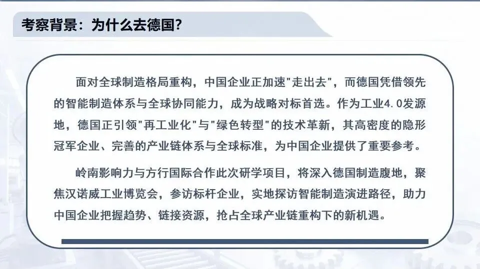 我们将带您走进西门子的心脏-慕尼黑总部、西门子先进数字化的代表-安贝格数字化中心和工厂、解析西门子人才培养的密码,并探访西门子数字化应用和生态企业-世界级的数字化企业等众多稀缺访学资源。