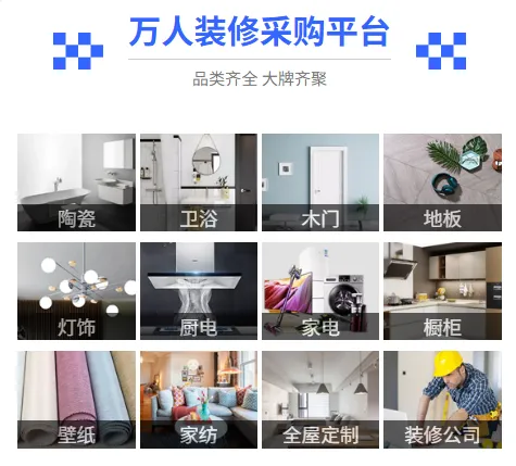 装修材料:涵盖瓷砖、地板、卫浴、门窗、涂料、壁纸等,满足不同装修风格需求。
