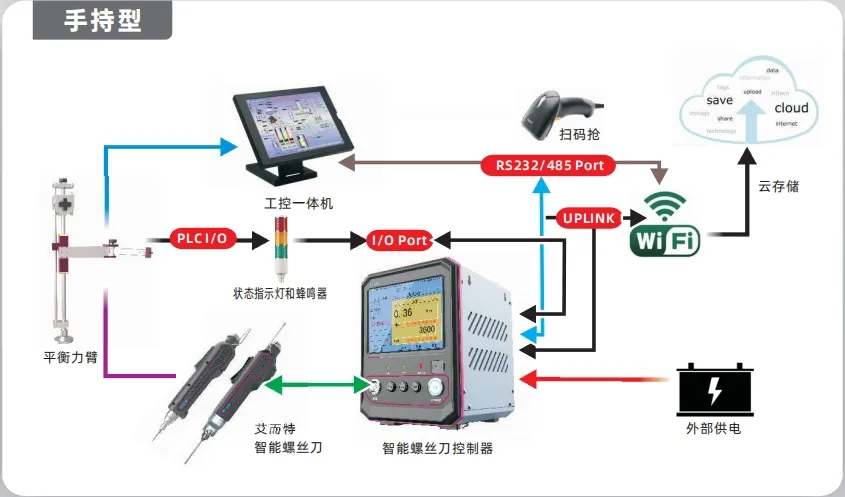 艾而特智能螺丝刀是艾而特结合螺丝拧紧行业的丰富经验与微电机制作的优势上,突破目前生产装配领域拧紧的技术壁垒,成功研发出的智能拧紧系统。辅助控制紧固组装工序作业过程,记录作业过程参数,智能提示错误操作,开启工业拧紧数字化新篇章。其采用高性能永磁同步伺服电机+高精度编码器+减速机实现智能数字化驱控、小巧、无粉尘、低噪音、抗震能力强、使用寿命长。可以实时监控扭力+角度+时间,实现滑牙、漏打等异常情况出现时第一时间报警功能。完美解决拧紧数据本地存储,数据接口传输,可对接工厂MES,方便进行质量追溯,实现数字化控制。