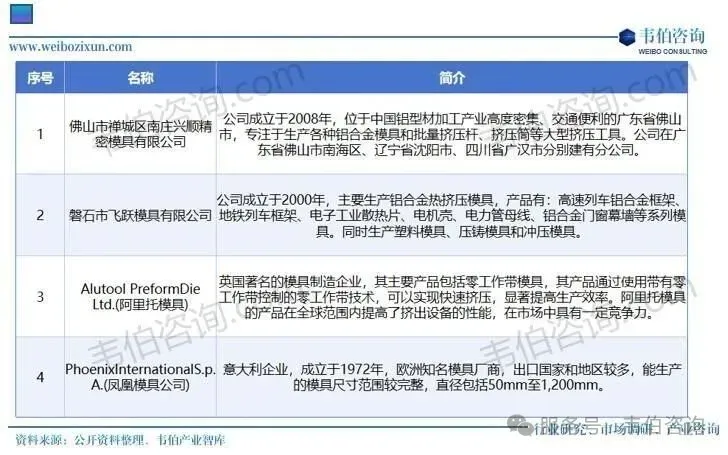 图表3:铝型材挤压模具主要企业情况