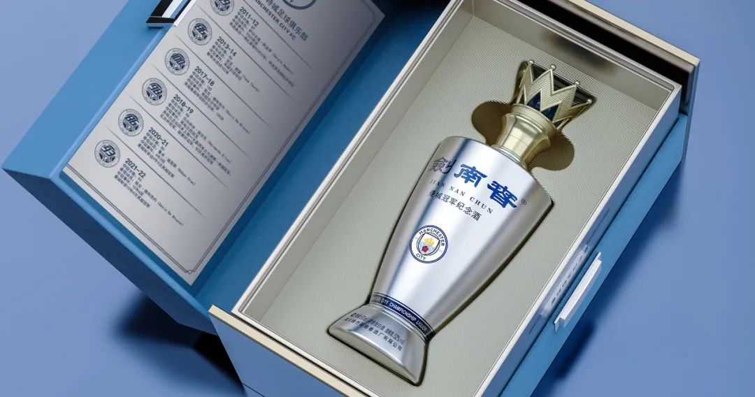 2022年6月,在曼城取得2021-2022英超赛季冠军的光荣时刻,剑南春作为曼城全球唯一白酒合作伙伴,特意推出新品“曼城冠军纪念酒”,为曼城“十年六冠,身价第一”的伟大成就留下芳香四溢的纪念标签,也成功打造行业内现象级爆款文创产品。