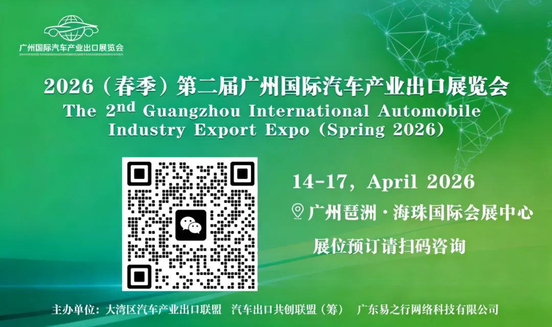 由大湾区汽车产业出口联盟、汽车出口共创联盟(筹)、广东易之行网络科技有限公司联合主办的2026(春季)第二届广州国际汽车产业出口展览会,展位预订工作已接近尾声。